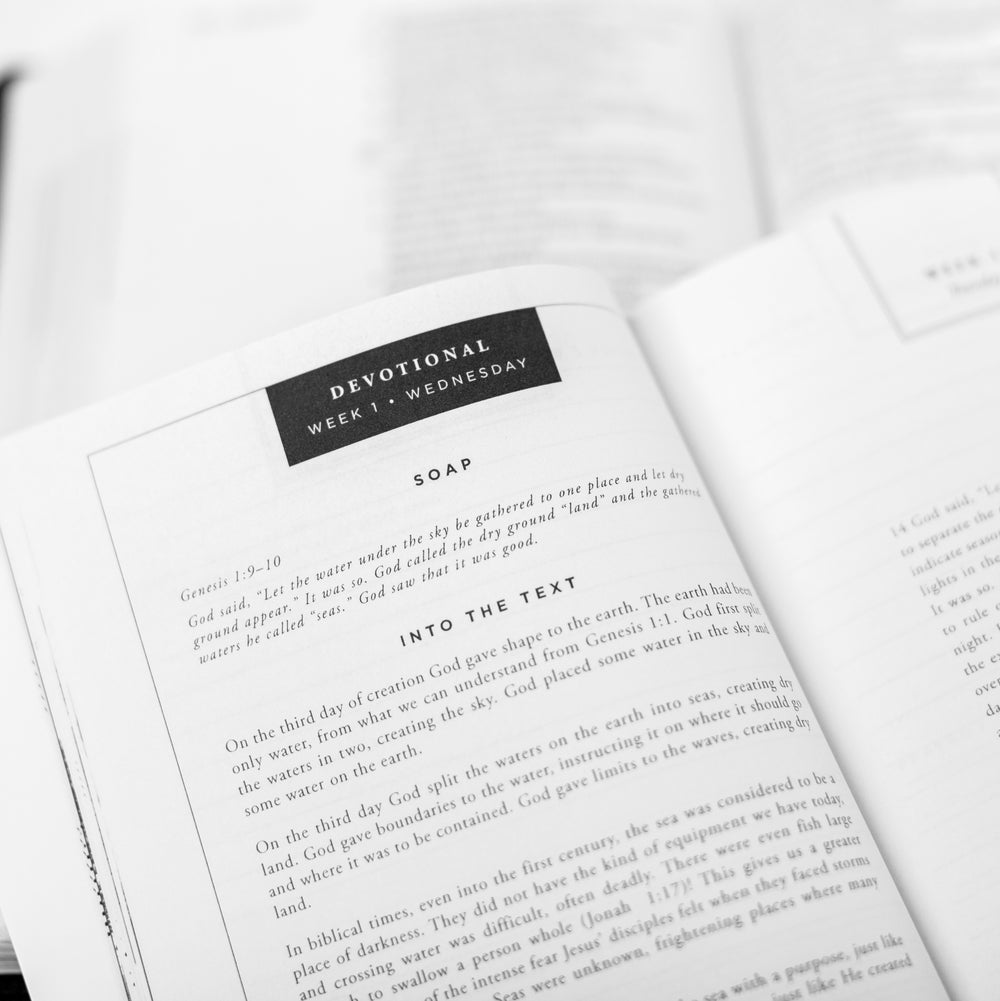 In the Beginning is a six-week Bible study on Genesis 1–11. This Bible study journal includes the entire text of Genesis 1–11. Daily readings explore not only the text of Genesis, but supporting verses and cross-references to provide a robust understanding of God’s character and actions in these early chapters. Also included in the In the Beginning Bible study journal are 30 daily devotions offering deeper understanding of Scripture. You will also find pages for daily Scripture reading, observation, application, and prayer, along with weekly challenges and questions.